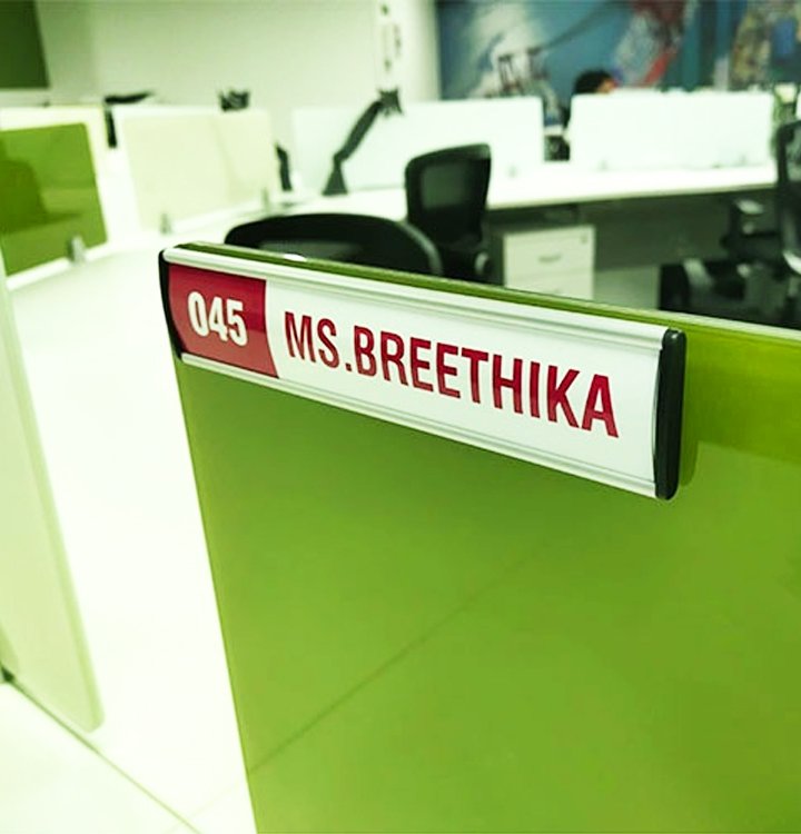 Enhance workplace organization and identity with clear, professional workstation signage. Designed for easy identification, these signs help employees and visitors navigate efficiently while maintaining a clean and structured office environment. Available in various materials and finishes, workstation signage can be customized to match your brand and interior aesthetics
